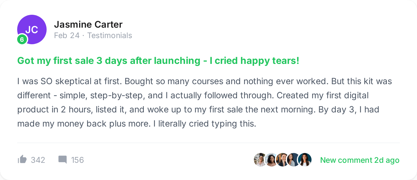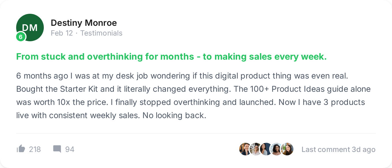 Then Igured it out. I created my first digital product, launched it, and started making sales. And I realized the process was actually way simpler than anyone was making it seem.